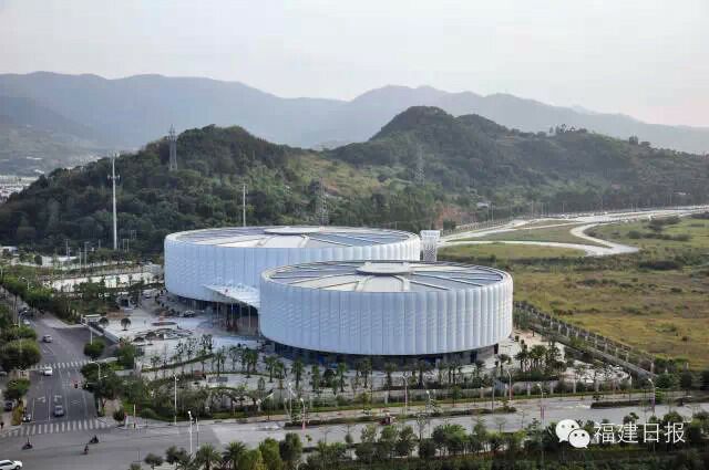 福州“麗水方”青口亮相 形如兩個(gè)巨大車(chē)輪,將承擔(dān)2015年首屆全國(guó)青運(yùn)會(huì)拳擊賽事