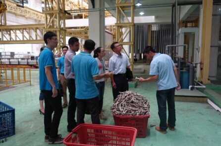 參觀伊始,總監(jiān)詳細(xì)地向貴賓介紹奮安集團(tuán)的發(fā)展歷程、獨(dú)特的銷售理念和優(yōu)質(zhì)的配套服務(wù)。期間,貴賓們還特別考察我司全亞洲第一條月產(chǎn)量5000T全自動立式氧化電泳線,并詳詢型材氧化表面處理工藝相關(guān)要求、細(xì)節(jié)。此外,對我司每個生產(chǎn)環(huán)節(jié)的高標(biāo)準(zhǔn)品檢要求給予了高度的認(rèn)可。