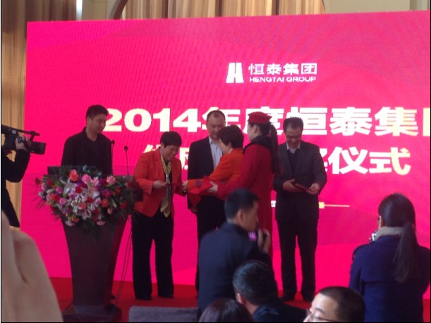 集團(tuán)總經(jīng)理黃秀華女士接受恒泰集團(tuán)劉紅總裁頒發(fā)的“優(yōu)秀供應(yīng)商”榮譽(yù)證書