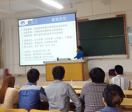 最后,校方還邀請我司銷售總經(jīng)理梁觀榮到學校開展關(guān)于“實戰(zhàn)營銷”的學術(shù)講座。另外我司與各大高校還開辟了其他校企合作的模式,如學校派遣學生入企實習,建立學生實習基地、學校推薦優(yōu)秀畢業(yè)生就業(yè)、設(shè)立校企合作訂單班等。