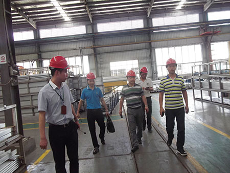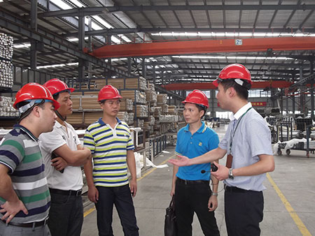 此次參觀,貴賓考察我司福清科技工業(yè)城鋁型材生產(chǎn)的各個工序時,重點考察時效、噴砂、電泳和噴涂等工藝,贊賞我司生產(chǎn)工藝之卓越。此外,還特別參觀注膠和穿條隔熱工藝、我司新研發(fā)的“圣羅德”系統(tǒng)鋁門窗展示廳。