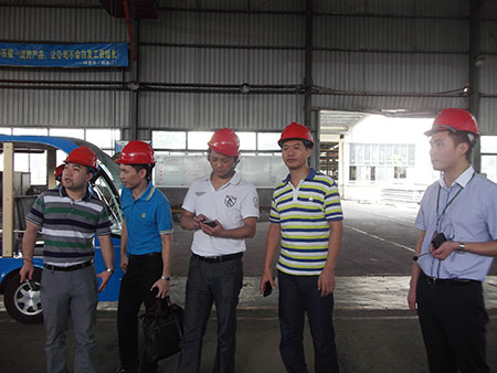 (貴賓正在考察擠壓車間)