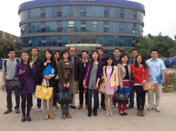 (梁總與老師們在奮安集團辦公樓前合影)