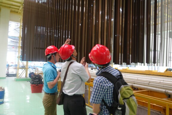 貴賓依次參觀我司型材各個生產(chǎn)車間,我司型材生產(chǎn)全部采用優(yōu)質(zhì)原材料,從而保證成品鋁材的卓越品質(zhì);此外,全亞洲第一條月產(chǎn)量5000T全自動立式氧化電泳線已正式全面投產(chǎn),全程采用電腦自動化控制,正所謂設(shè)備先進(jìn)、品質(zhì)卓越。